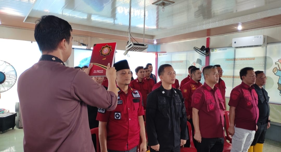 Ketua Panitia Pemungutan Suara (PPS) Kelurahan Serasan Jaya, Zulkifli mengawali pelantikan dengan membacakan Surat Keputusan pengangkatan KPPS Lapas Sekayu. Ia kemudian memimpin pengucapan sumpah dan janji KPPS disaksikan rohaniawan, diikuti seluruh anggota KPPS.