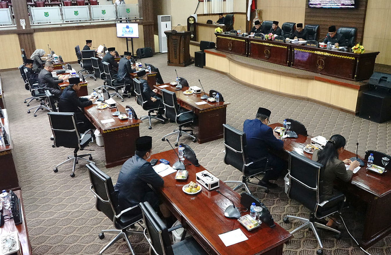 Rapat dipimpin oleh Wakil Ketua III DPRD Endi Susanto, SE didampingi Wakil Ketua I DPRD Jonkenedi, SIP.,M.Si dan Wakil Ketua II DPRD Irwin Zulyani, SH dihadiri Pj. Bupati Musi Banyuasin diwakili Pj. Sekretaris Daerah Musni Wijaya, S.Sos.,M.Si, Asisten Setda Musi Banyuasin, Staf Ahli Bupati, Sekretaris DPRD, Perangkat Daerah Musi Banyuasin dan Pihak terkait lainnya yang hadir secara Virtual.